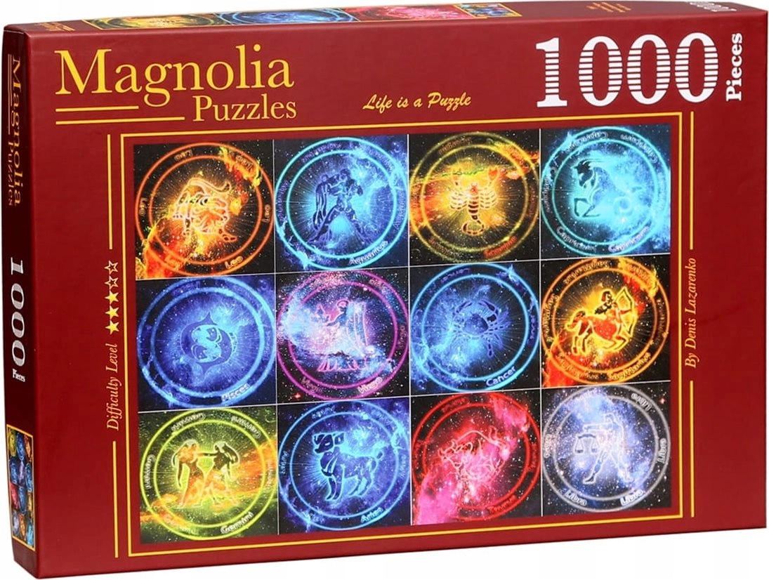 Scufundați-vă în lumea astrologiei și a asamblării cu un puzzle care îi va încânta atât pe începători, cât și pe pasionații experimentați. Motivul celor douăsprezece semne ale zodiacului este detaliat și vizual atrăgător, astfel încât veți privi cu plăcere lucrarea finală. Datorită imprimării de calitate și cartonului solid, vă veți bucura de ore întregi de divertisment plăcut.