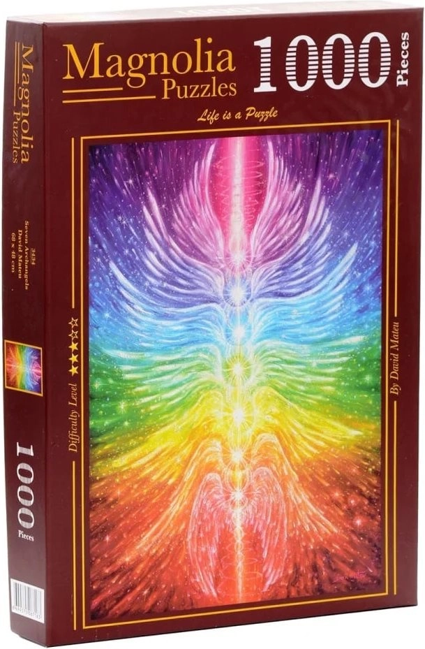 Puzzle elegant cu motivul celor șapte arhangheli oferă 1000 de piese pentru o provocare plăcută și relaxare. După asamblare, imaginea are dimensiunea de aprox. 48 × 68 cm. Ideal pentru iubitorii motivelor spirituale și pentru momente de liniște. Datorită calității pieselor, asamblarea este fluentă și precisă. 1000 de piese, motivul celor șapte arhangheli, dimensiune 48 × 68 cm, execuție de calitate.
