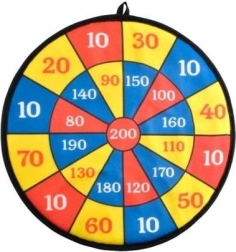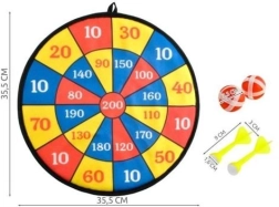 Placă clasică de dart – cu bile și săgeți cu scai. Este o jucărie ideală care antrenează precizia și coordonarea mână–ochi. Distanța față de țintă poate fi mărită treptat, ceea ce crește dificultatea jocului. Ținta are o suprafață acoperită cu țesătură fibroasă pe care se prind bine bilele prevăzute cu benzi cu cârlige fine. Acest joc cu săgeți cu scai este o distracție grozavă pentru mici și mari.