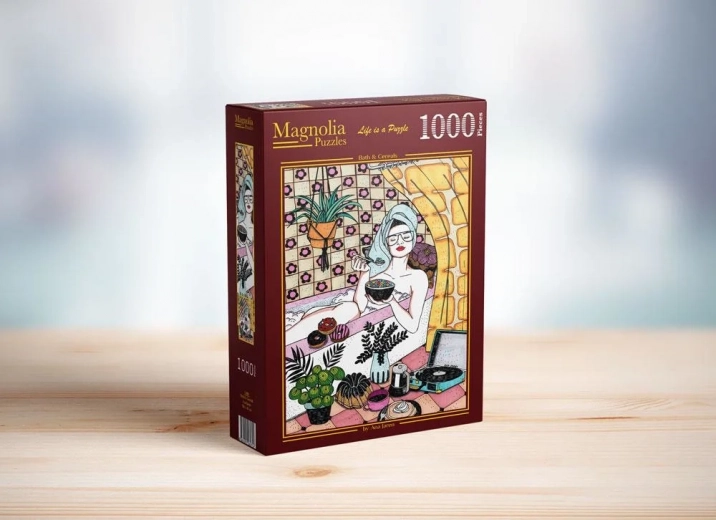 Un puzzle elegant cu motiv de baie și cereale care va încânta orice iubitor de ilustrații estetice. Datorită celor 1000 de piese tăiate cu precizie, oferă o provocare plăcută și un rezultat frumos de aproximativ 48 × 68 cm – ideal pentru înrămare.