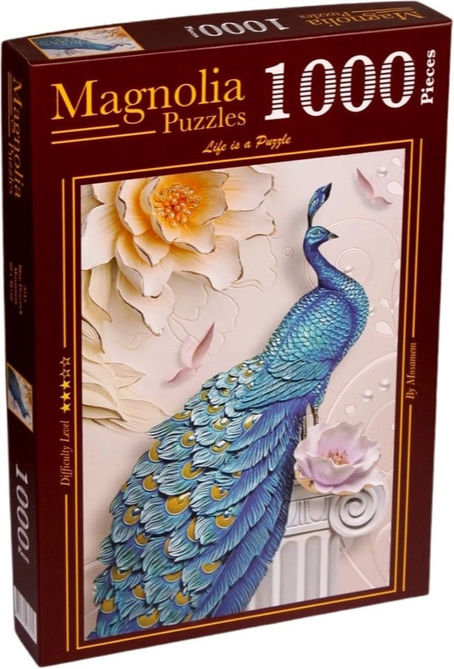 Motivul elegant al păunului albastru îi va încânta atât pe iubitorii naturii, cât și pe pasionații de puzzle-uri. Cu cele 1000 de piese, puzzle-ul oferă o provocare plăcută și, în același timp, un mod excelent de relaxare. Imaginea finală are dimensiunea universală de 48 × 68 cm, ușor de înramat și care arată minunat pe perete.