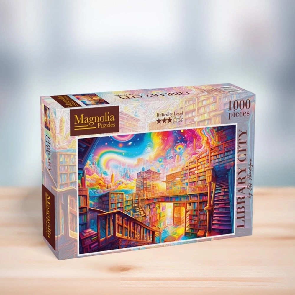 Cufundați-vă în fantezia „Orașului cărților” și lăsați-vă purtați de cele o mie de piese atent decupate. Puzzle-ul este o alegere excelentă pentru serile în familie, pentru dezvoltarea concentrării sau ca decorațiune după lipire. Tiparul de calitate oferă culori vii și detalii fine, care ies în evidență după finalizare.
