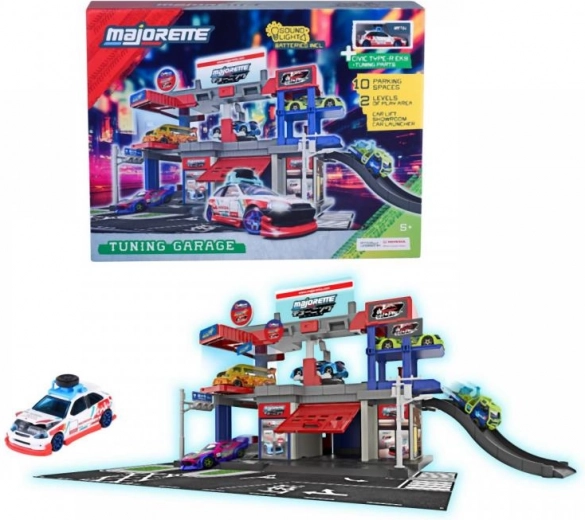Descoperă distracția plină de adrenalină auto cu garajul JDM Legends de la Majorette. Centrul de joacă pe două niveluri oferă un lift acționat manual, efecte luminoase și sonore, stație de alimentare, platformă de ridicare, zonă de tuning și până la 10 locuri de parcare. Include o mașinuță metalică de 7,5 cm.