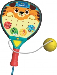 Setul include o minge moale din cauciuc, care poate fi ușor prinsă de rachetă cu ajutorul unui elastic – copiii pot exersa loviturile fără riscul de a pierde mingea și își dezvoltă natural coordonarea și îndemânarea. Modurile interactive cu cântece și poezii fac jocul mai variat și susțin dezvoltarea vorbirii și a simțului ritmic.