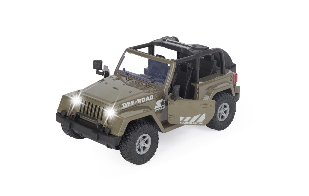 Bucură-te de o cursă grozavă cu un jeep care impresionează de la prima vedere. La scară 1:10 oferă proporții realiste, execuție detaliată și realizare durabilă potrivită pentru joacă atât în interior, cât și în exterior. Efectele luminoase și sonore integrate intensifică atmosfera și transformă fiecare cursă într-o adevărată aventură.