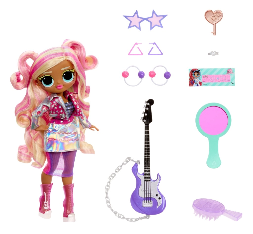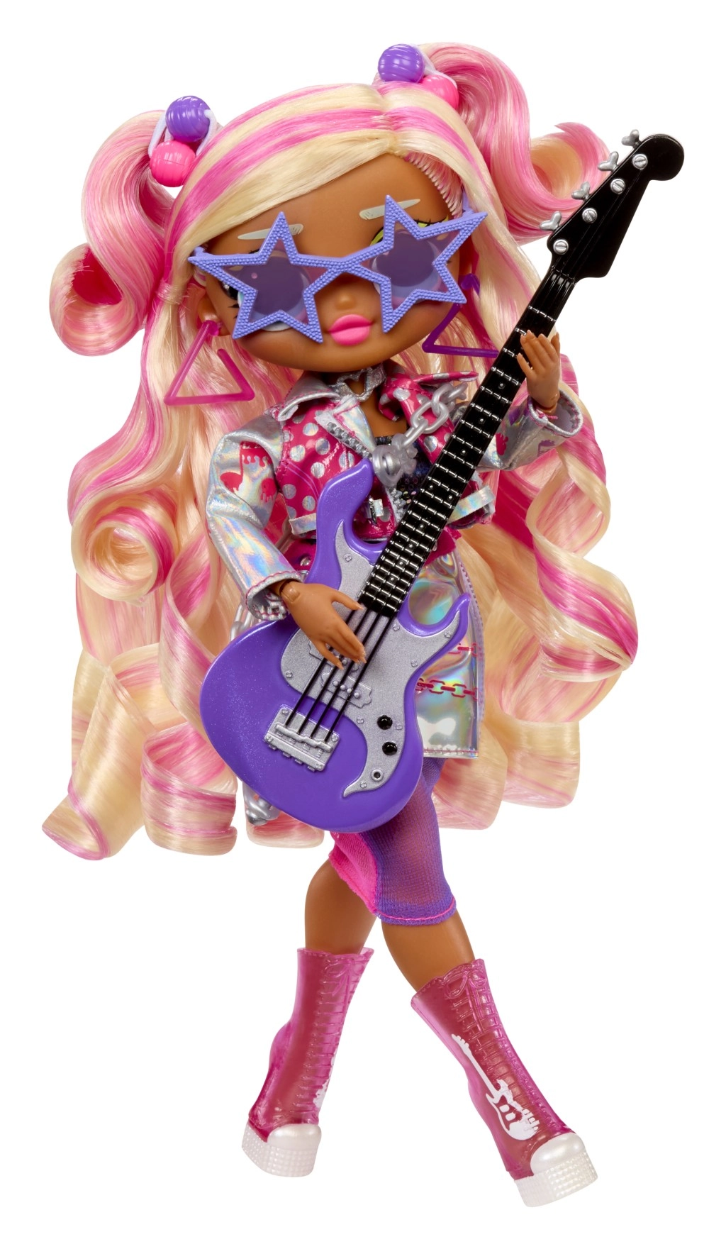 Trăiește emoția despachetării cu L.O.L. Surprise! O.M.G. Sora mai mare Rockstar. Te așteaptă 15+ surprize, descifrarea codurilor, schimbare de look în apă rece și două ținute într-una pentru combinații infinite. Include chitară, accesorii stilate, perie de păr și suport pentru pozat.