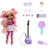 Păpușa are ținută realizată cu detalii fine, membre articulate pentru pozare și multe accesorii, inclusiv chitară electrică, bijuterii și perie. Două look-uri într-unul și peste 15 surprize oferă ore de joacă creativă, colecționare și expunere.