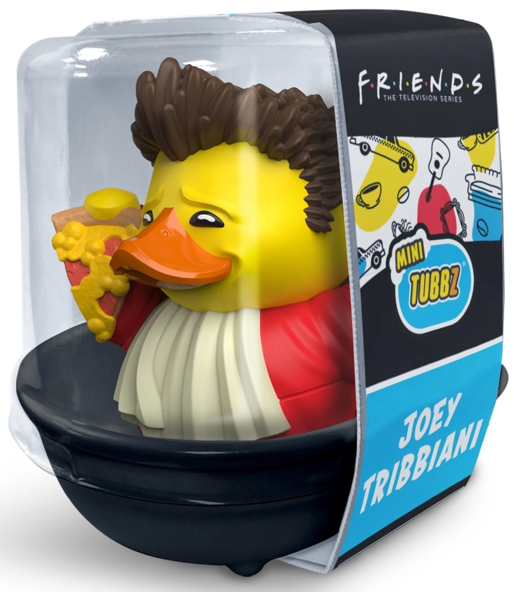 Rățușca mini TUBBZ din seria cult Prieteni îl aduce pe Joey Tribbiani într-un design de rățușcă drăguț și detaliat. Datorită înălțimii compacte de 5,5 cm, este ideală pentru vitrine mici, pe birou sau ca mică atenție pentru iubitorii serialului.