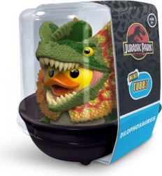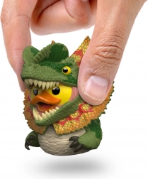 Această rață TUBBZ de colecție, licențiată oficial, aduce celebrul prădător din Parcul Jurasic într-o interpretare adorabilă de rață. Detaliile realiste ale solzilor, gulerului colorat și dinților sunt completate de o combinație puternică de verde, portocaliu și galben, datorită căreia figurina iese în evidență în orice colecție.