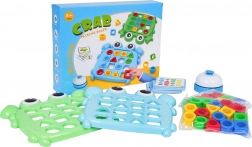 Plastic robust, în culori vii, două planșe de joc în formă de crab, piese sigure și ușor de prins pentru mâinile mici.