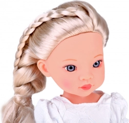Păpușa elegantă, cu înălțimea de aprox. 33 cm, este realizată din plastic rezistent și are mâini, picioare și cap mobile, astfel încât poate fi poziționată cu ușurință în diverse poze. Părul blond lung, prins în coadă, poate fi pieptănat și coafat, stimulând creativitatea și motricitatea fină.