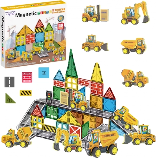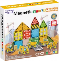 Descoperă lumea creativă a construcțiilor cu cuburile magnetice WOOPIE. Setul oferă 30 de piese rezistente și colorate cu dimensiunea de 7,5 × 7,5 cm și 5 vehicule de construcții realiste cu roți libere. Piesele se conectează ușor și rapid datorită magneților, sunt sigure și durabile – ideale pentru mâini mici. Dezvoltă excelent imaginația, motricitatea fină și colaborarea în echipă.