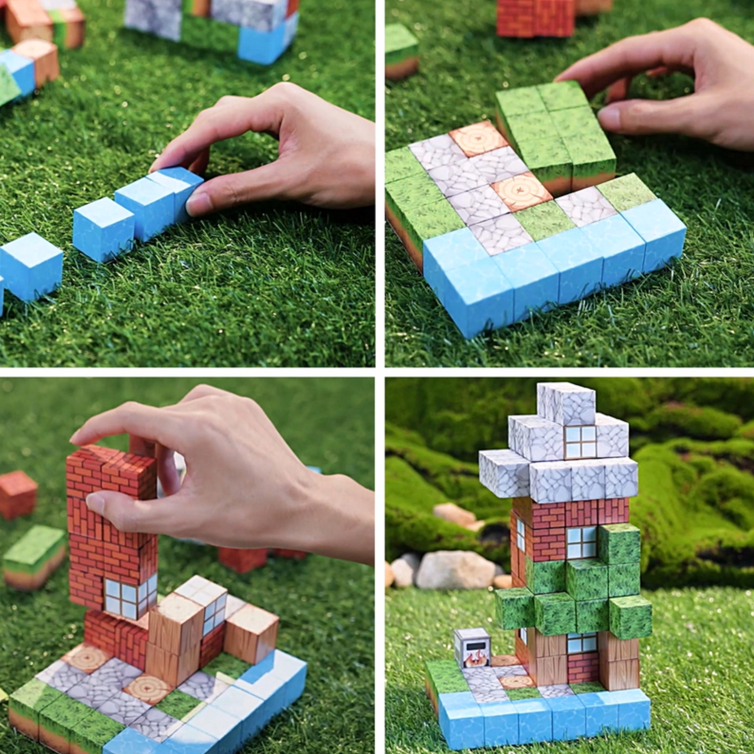 Susține dezvoltarea naturală a copilului prin joacă: setul dezvoltă imaginația spațială, coordonarea mână–ochi, răbdarea și cooperarea. Modelele inspirate din natură stimulează crearea propriilor lumi și povești.