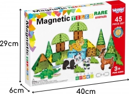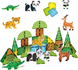 Cu acest set de construcție magnetic, copiii vor construi cascade, peșteri, arcade, copaci și arbuști și le vor anima cu figurinele de animale. Piesele se conectează ușor și în siguranță datorită îmbinării magnetice, astfel încât construitul este distractiv și intuitiv.