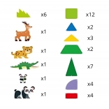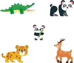Panda, leopardul, cerbul și crocodilul dau viață construcțiilor, susțin dezvoltarea limbajului și a imaginației în jocurile de rol.