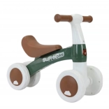 Primii pași în lumea mersului pe bicicleta de echilibru în deplină siguranță. Bicicleta de echilibru WOOPIE cu patru roți se remarcă prin centru de greutate coborât și unghi de virare limitat la 135°, ceea ce ajută la prevenirea căderilor și oferă copilului încredere. Patru roți late și silențioase nu necesită umflare, atenuează denivelările și au aderență excelentă, precum și rezistență la uzură.
