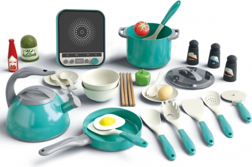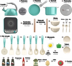 Cu acest set bogat echipat, copiii se vor cufunda în lumea gătitului. Plita cu inducție oferă autenticitate jocului, iar oalele, tigaia cu ou, ceainicul și numeroasele accesorii permit pregătirea unui „meniu” pentru întreaga familie. Datorită elementelor realiste, precum legumele, solnița și pipernița, jocul este captivant și stimulează imaginația.