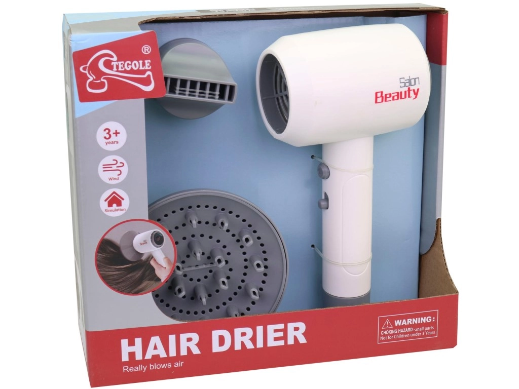 Uscătorul este ușor, se ține ușor în mâna copilului și este ideal pentru colțișorul de coafură pentru copii. Construcția sigură și operarea simplă îl fac un cadou excelent pentru copiii de la 3 ani în sus, care doresc să imite adulții și să își dezvolte abilitățile.
