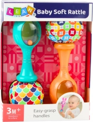 Acest duo de zornăitoare este conceput pentru o stimulare senzorială sigură și plăcută. Biluțele colorate din interior produc la mișcare un sunet plăcut, discret, care liniștește copiii și îi motivează la activitate. Mânerul fără BPA este neted, rezistent și potrivit chiar și în perioada erupției dinților.