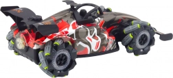 Construcția specială a roților permite deplasare în toate direcțiile și rotire la 360°, astfel poți executa trucuri dinamice și manevre precise. Luminile LED adaugă atmosferă, mai ales la amurg. Mașina este alimentată de un acumulator Li-ion 3,7 V (inclus), încărcarea se face prin USB. Telecomanda necesită 2× AA (neincluse).