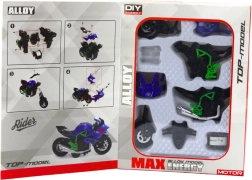Descoperă bucuria construcției cu un stilat model DIY de motocicletă la scara 1:14. Piesele din metal și plastic de calitate asigură o structură solidă și durabilă, în timp ce combinația intensă de verde‑albastru conferă modelului final un aspect sport. După asamblare, motocicleta este excelentă atât pentru joacă, cât și ca decor pentru cameră.