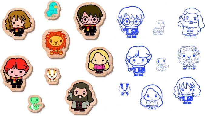 - 9 ștampile din lemn decupate cu motive HARRY POTTER îndrăgite pentru creații nesfârșite.