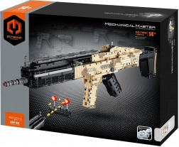 Acest set amplu de construcție îi va încânta pe toți pasionații de modele tehnice. Pușca automată realistă, inspirată de arme tactice, are o construcție detaliată cu elemente autentice, precum încărcător, țeavă și pat. Datorită mecanicii bine gândite, te vei bucura de părți mobile și de simularea tragerii cu proiectile sigure.