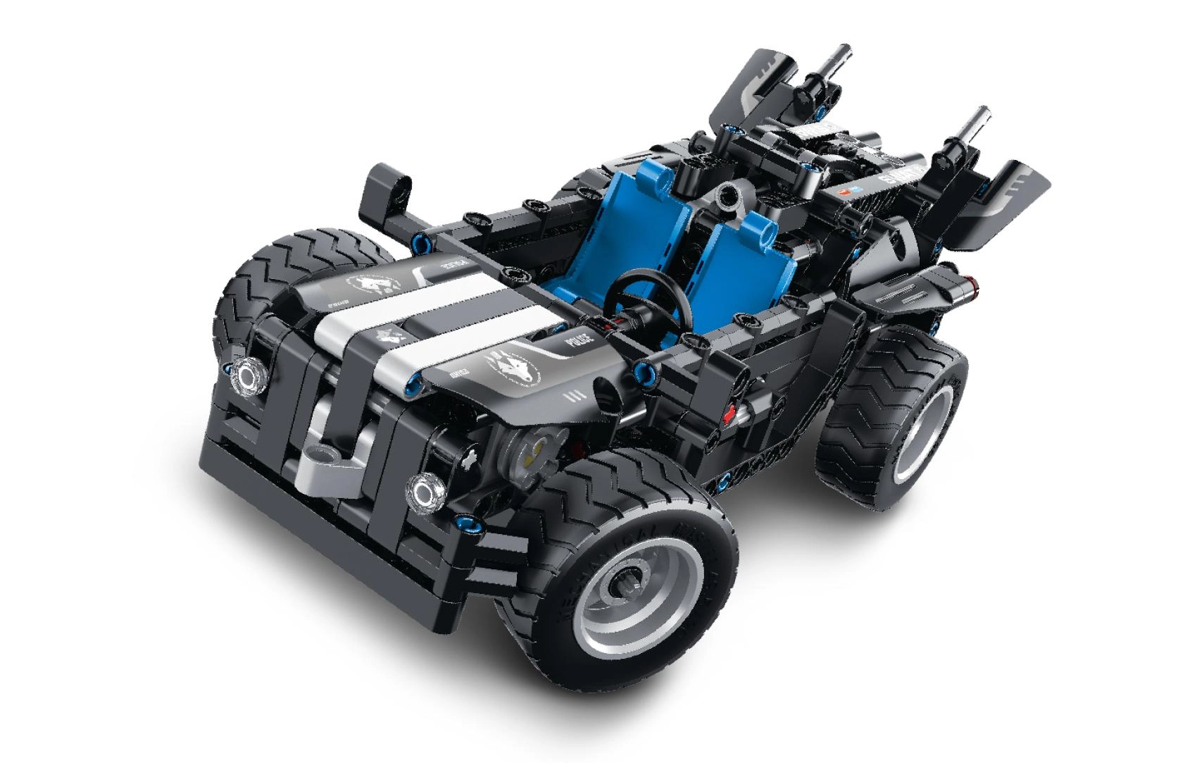 - Model 2‑în‑1 – asamblezi două versiuni diferite ale vehiculului off-road.