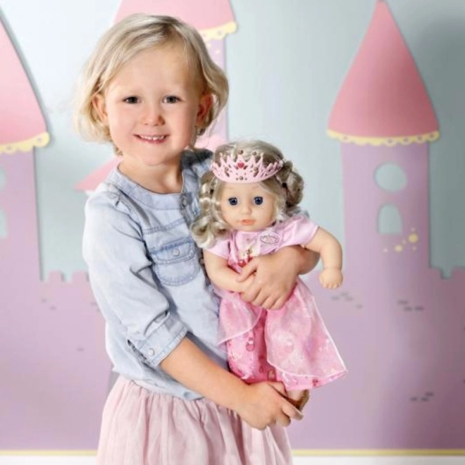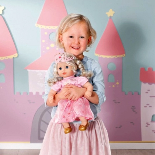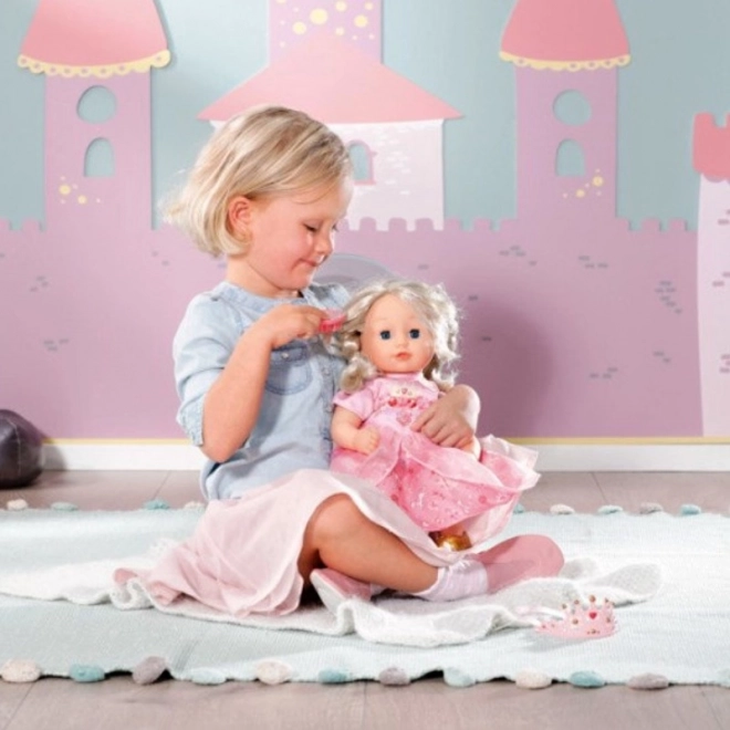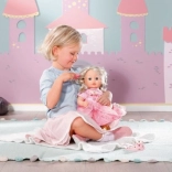 Păpușa Baby Annabell Micuța Prințesă Dulce este creată pentru mici prințese cu tendințe fantastice. Când o săruți, răspunde cu sunete de sărut, iar obrăjorii săi se înroșesc. În același timp, își închide ochii sclipitori de culoare albastră. Cu părul său de calitate și peria proprie, poți crea coafuri minunate. Trupul moale al acestei păpuși este ideal pentru alintat și relaxare după o zi plină de joacă.