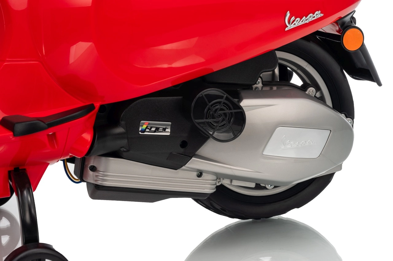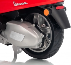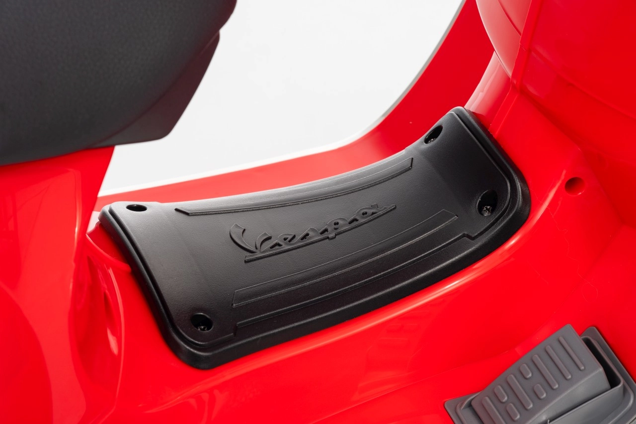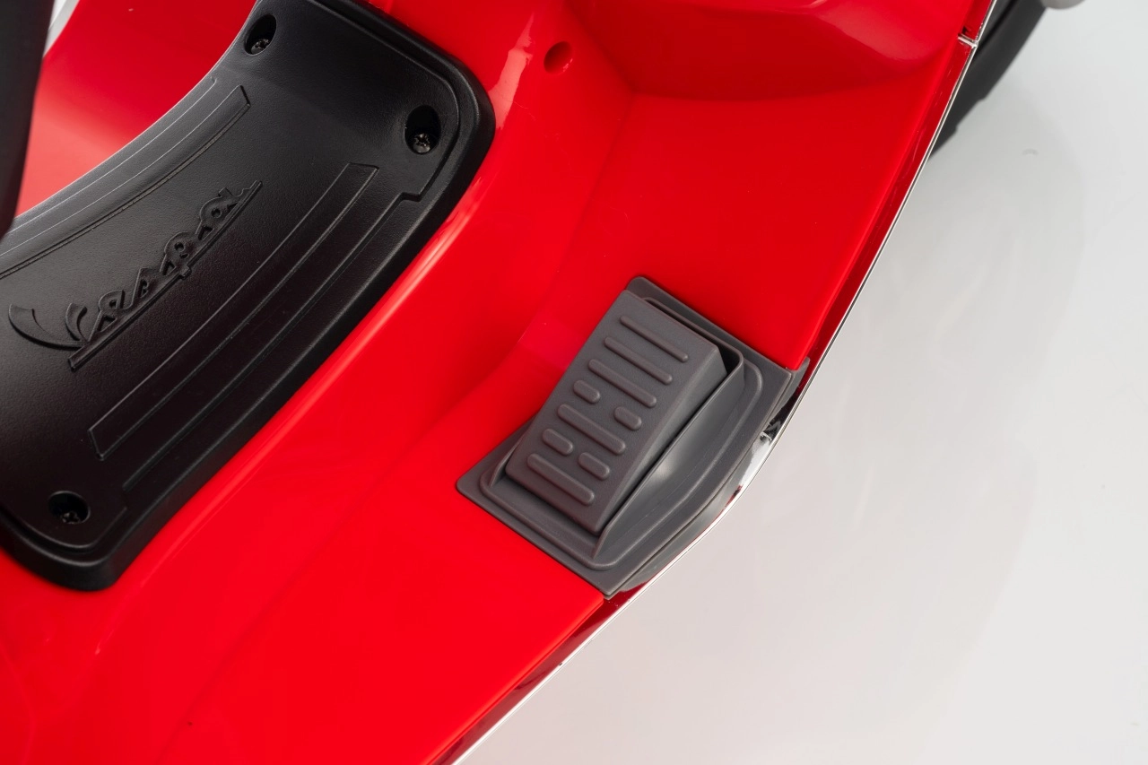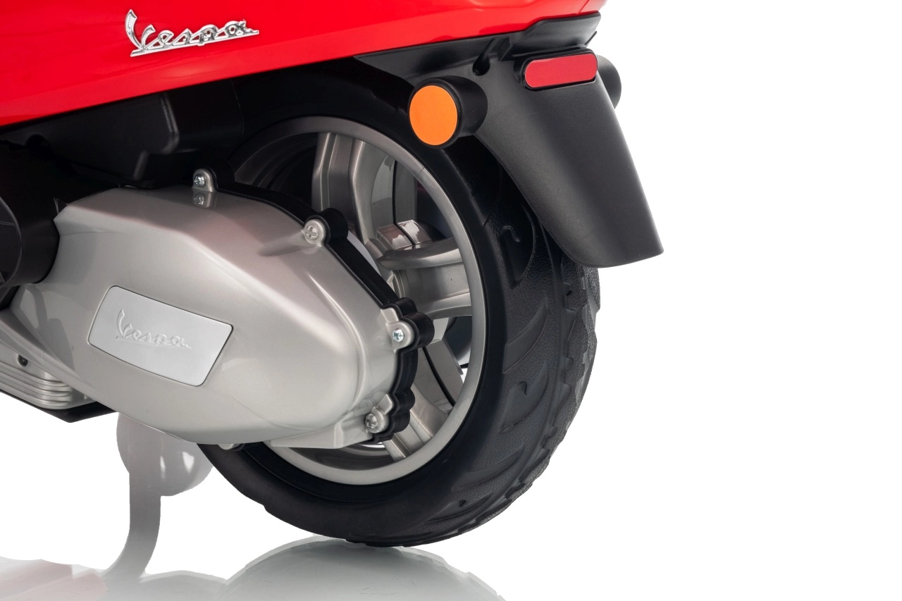 Scuterul pentru copii VESPA ROMA, în culoarea roșie, oferă o experiență de condus autentică într-o variantă sigură pentru cei mici. Datorită pornirii line, mersului înainte și înapoi și roților EVA de calitate, deplasarea este confortabilă și silențioasă. Luminile LED practice sporesc vizibilitatea și conferă vehiculului un aspect realist.