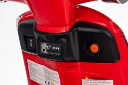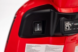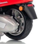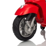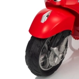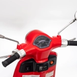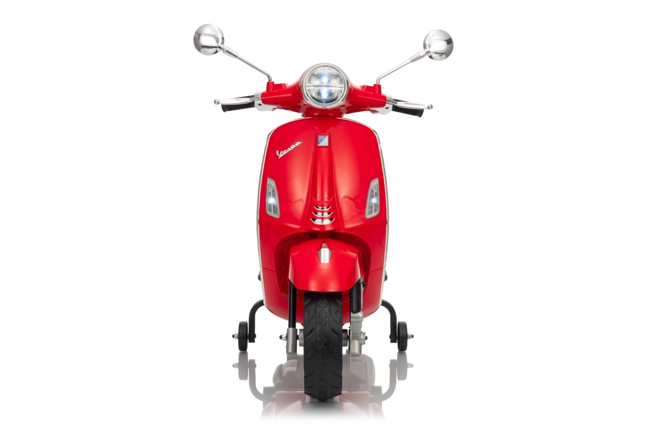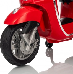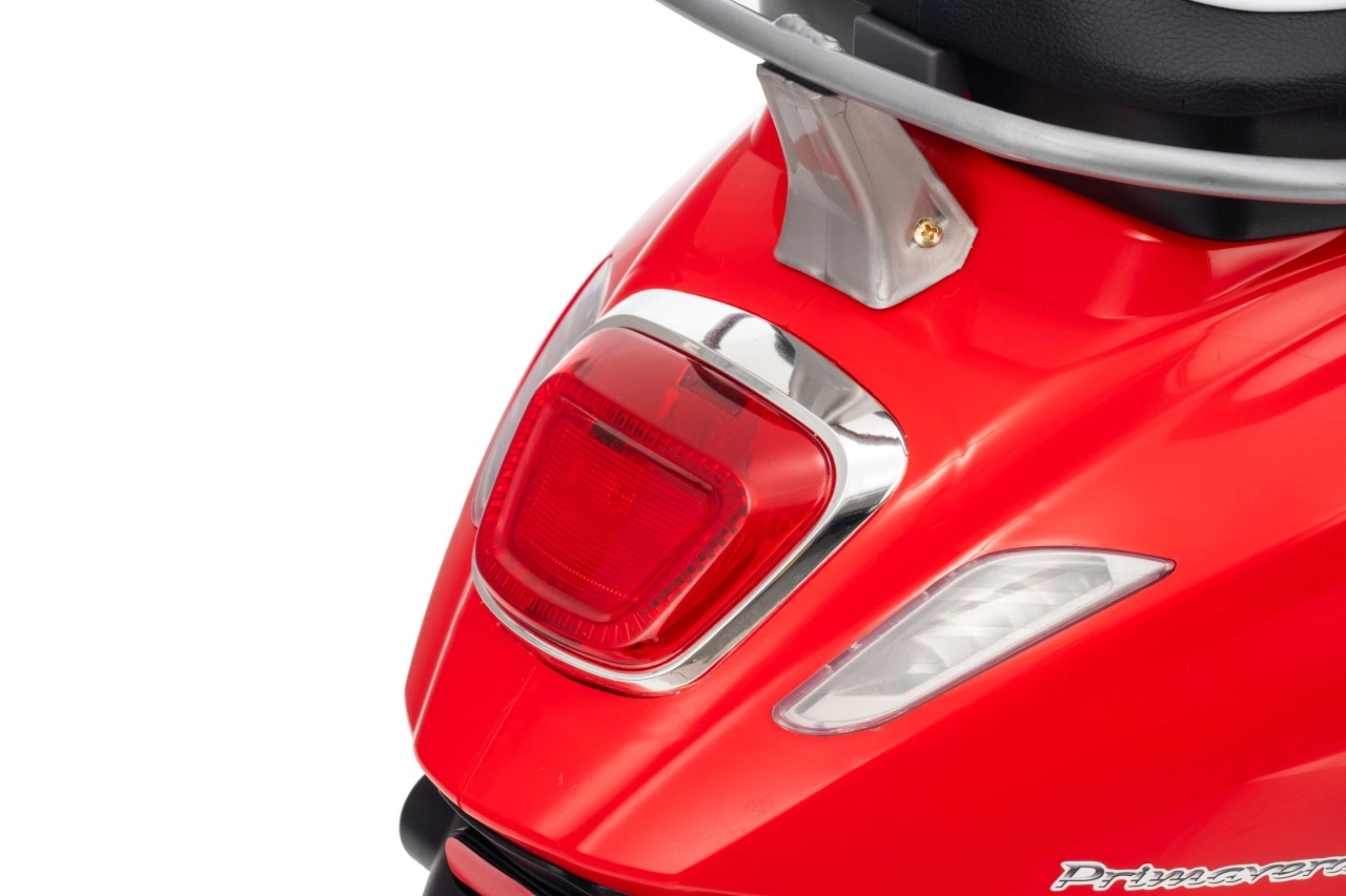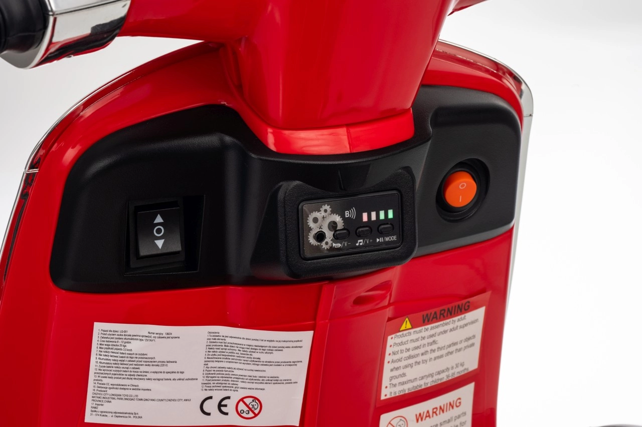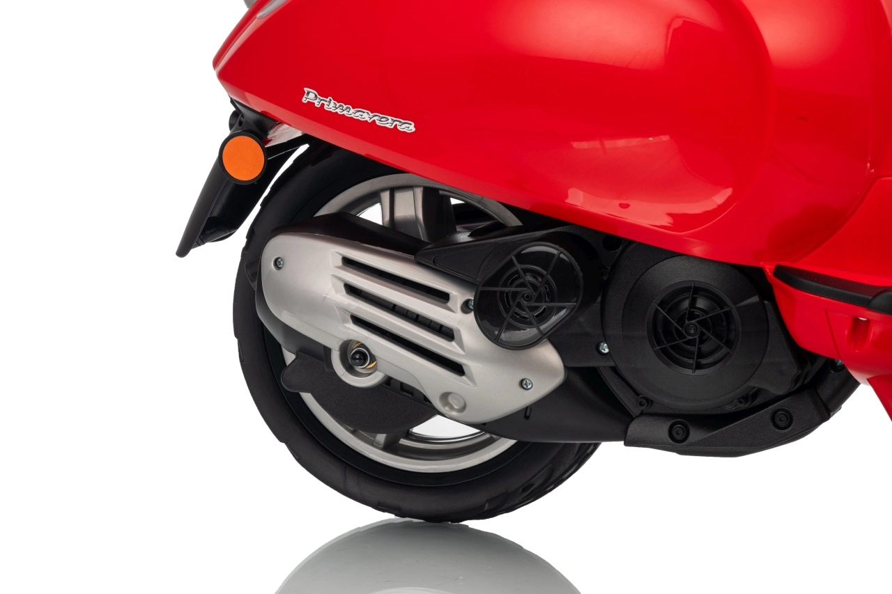 Scuterul pentru copii VESPA ROMA, în culoarea roșie, oferă o experiență de condus autentică într-o variantă sigură pentru cei mici. Datorită pornirii line, mersului înainte și înapoi și roților EVA de calitate, deplasarea este confortabilă și silențioasă. Luminile LED practice sporesc vizibilitatea și conferă vehiculului un aspect realist.