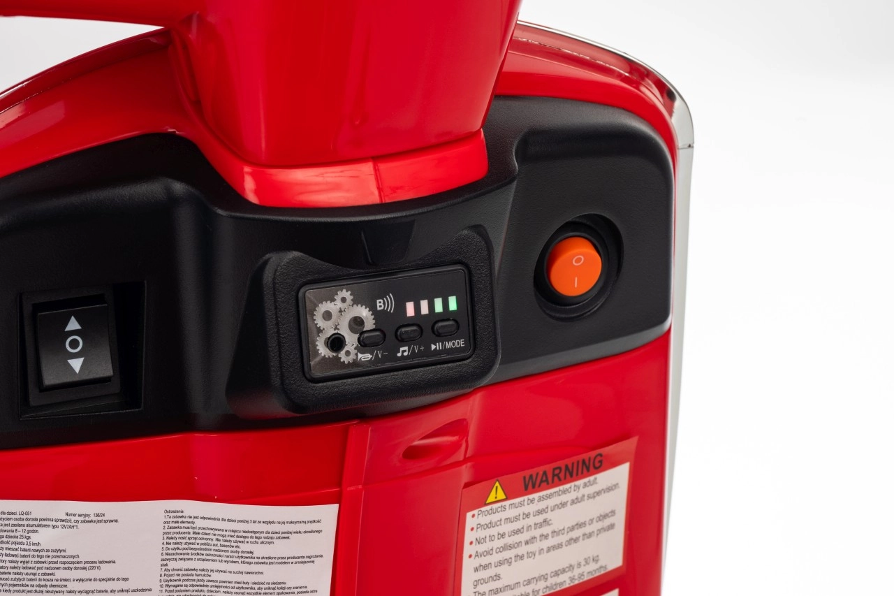 Cei mici se vor distra cu panoul audio integrat – redați melodiile preferate prin Bluetooth, MP3 sau AUX. Pe ghidon se află butoane pentru sunete și claxon, iar șaua din piele ecologică asigură confort și la drum mai lung. Indicatorul nivelului bateriei vă arată când este momentul pentru încărcare.
