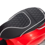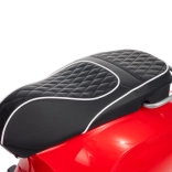 Elegantul scuter electric pentru copii în stil VESPA îi va încânta pe micii șoferi prin aspectul realist, șaua confortabilă din piele ecologică și stabilitatea la condus datorită rotițelor ajutătoare. Oferă motor 2×35 W, baterie 12 V 7 Ah, iluminare LED față și spate și funcții audio bogate (MP3, Bluetooth, AUX) cu indicator al nivelului bateriei.