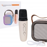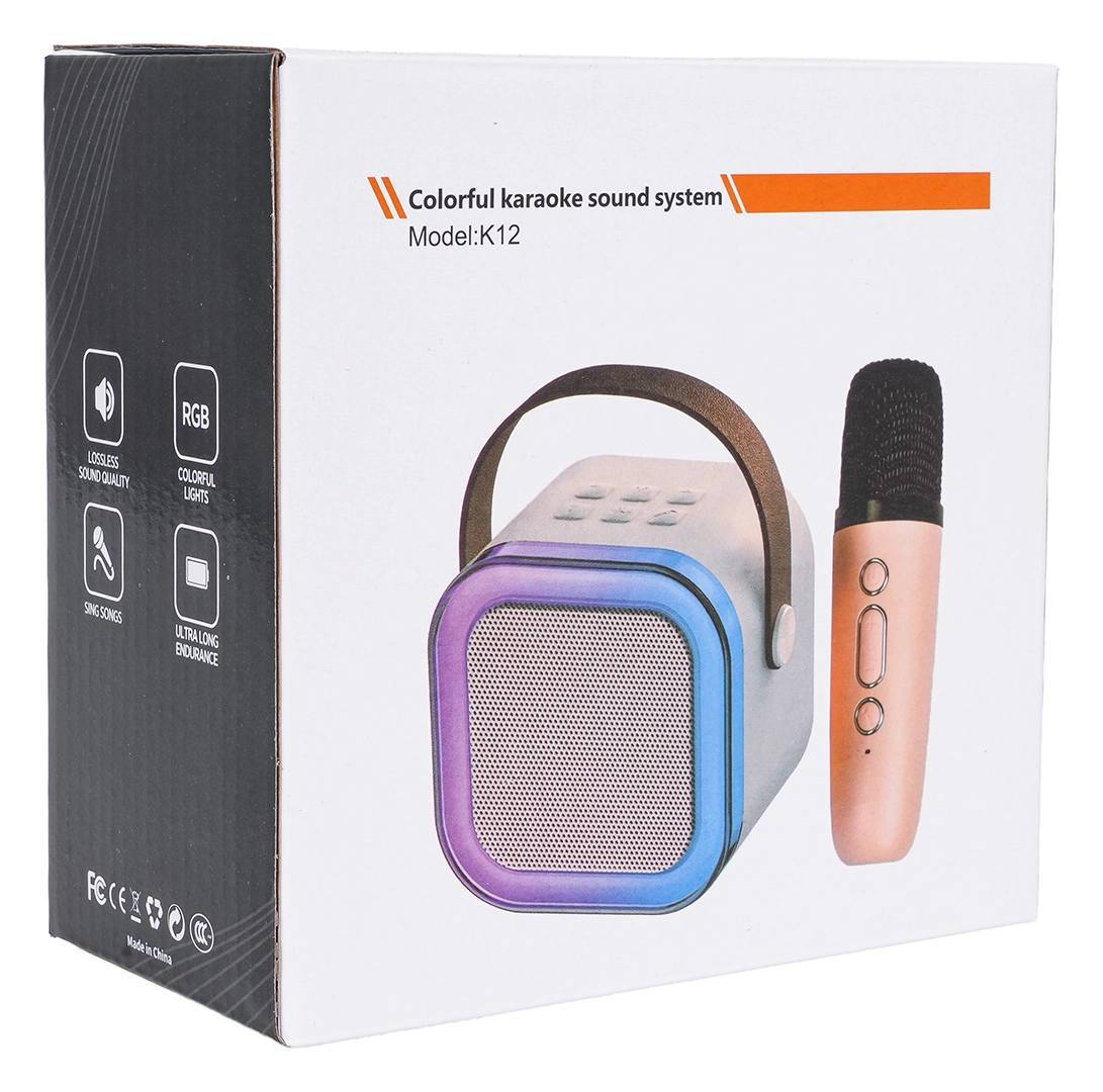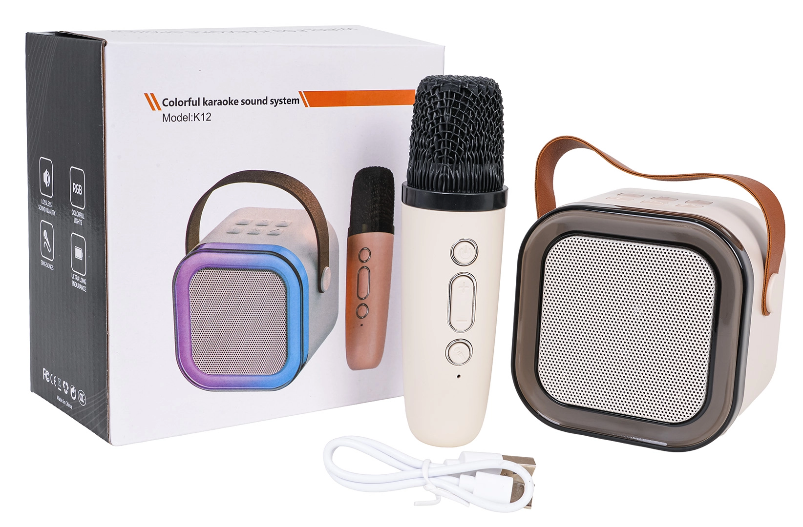 Set karaoke compact pentru copii de la 3 ani și adulți, care combină un microfon wireless și un difuzor mini puternic cu sunet clar și puternic, iluminare RGB și Bluetooth 5.0 stabil. Datorită reducerii zgomotului DSP, suportului pentru MP3/WMA/WAV și intrărilor inclusiv card TF și USB‑C, este ideal pentru cântat, anunțuri și distracție în călătorii.