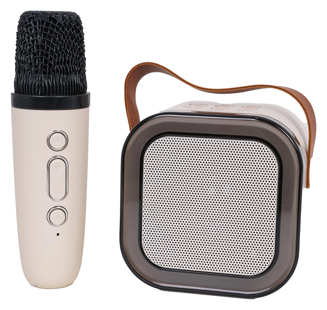 Bucurați-vă de karaoke oriunde – difuzorul ușor și compact cu curea din piele și microfonul wireless formează un set portabil care surprinde prin claritatea și dinamica sunetului. Decodarea MP3 avansată și reducerea zgomotului DSP evidențiază vocile și atenuează zgomotul, astfel încât vă veți auzi clar chiar și în medii aglomerate.