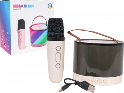 - Set karaoke: microfon wireless + difuzor Bluetooth portabil cu iluminare RGB