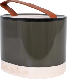 Datorită Bluetooth 5.0, conexiunea este stabilă și compatibilă cu telefon, tabletă, TV și computer. Sunt disponibile și alte opțiuni de redare: slot pentru card TF (până la 64 GB), AUX de 3,5 mm și încărcare USB‑C. Acumulatorul integrat oferă 4–5 ore de redare și indicator al nivelului de încărcare. Construcția rezistentă cu protecție IPX3 face față ploii ușoare – ideal pentru petreceri, picnicuri sau karaoke acasă.