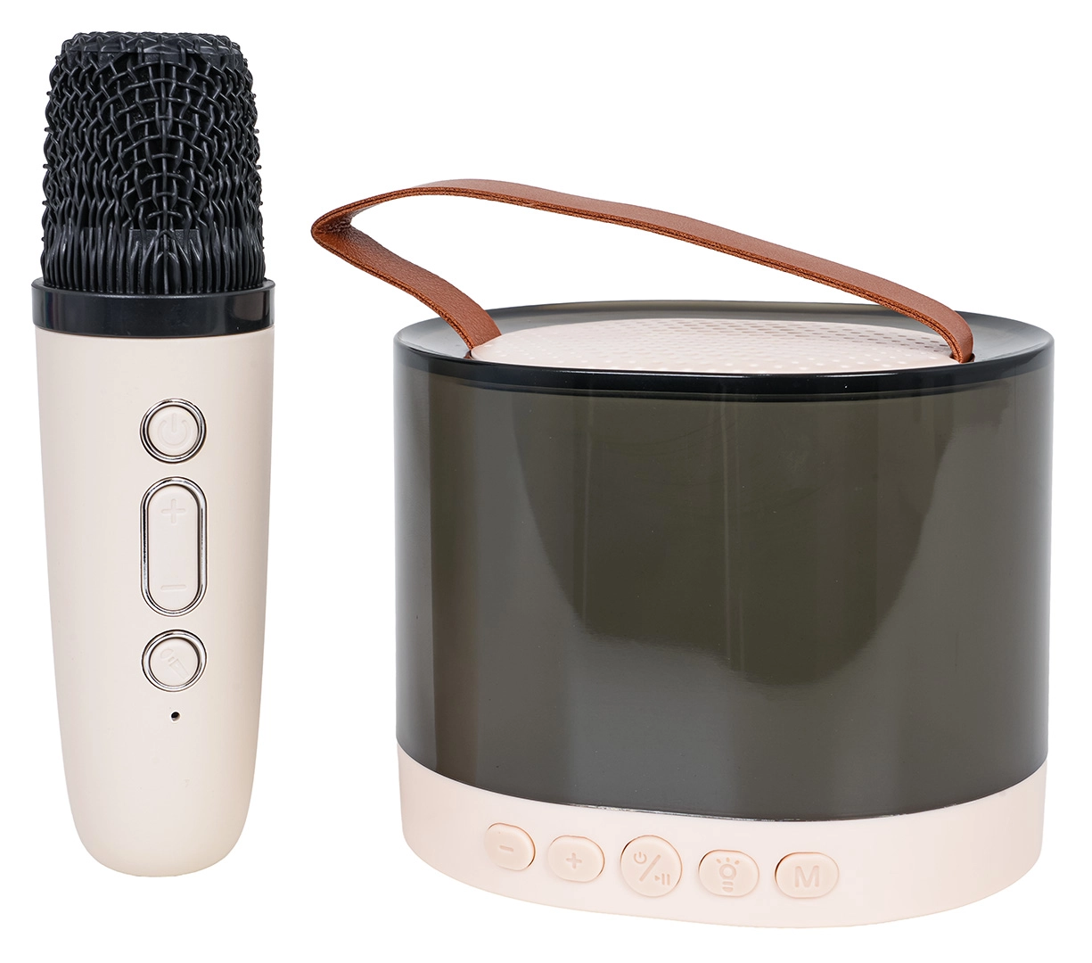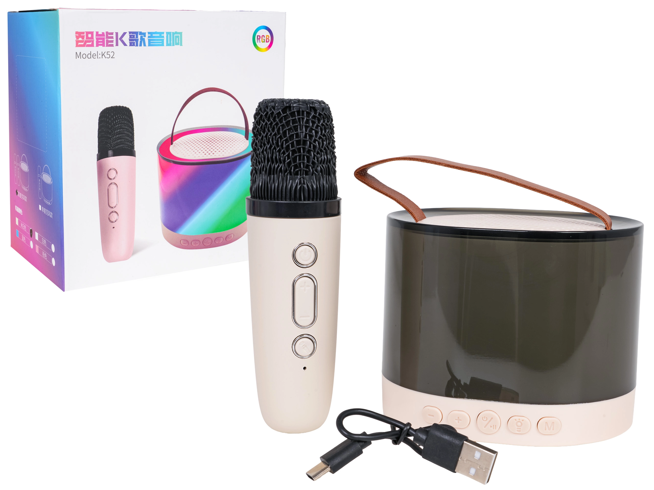Set karaoke compact pentru copii de la 3 ani și adulți, care unește un microfon wireless și un difuzor portabil cu iluminare RGB. Bucură-te de sunet clar și puternic datorită DSP-ului pentru reducerea zgomotului, conexiunii stabile Bluetooth 5.0 și mai multor moduri de redare, inclusiv card TF, AUX și USB‑C. Construcție rezistentă cu protecție IPX3, curea practică din piele ecologică și până la 5 efecte luminoase pentru distracție perfectă acasă sau în deplasare.