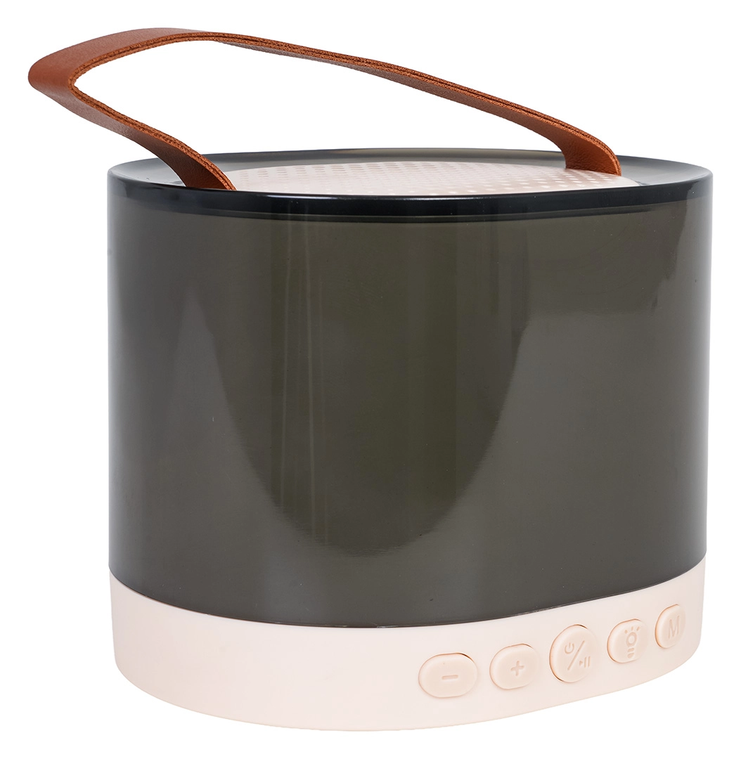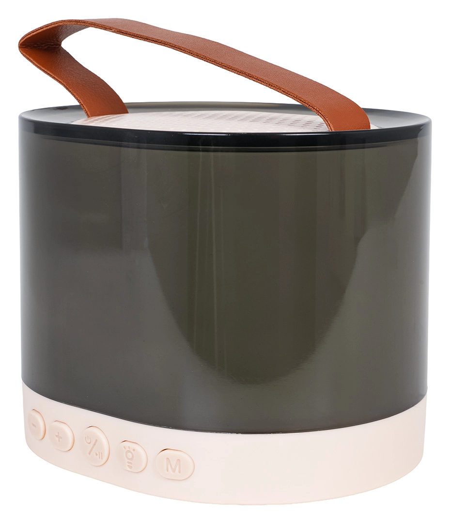 Acest set karaoke portabil combină un microfon wireless de calitate și un difuzor elegant cu carcasă translucidă și mâner din piele ecologică pentru transport facil. Decodarea MP3 avansată și reducerea zgomotului prin DSP asigură basi proeminente, înalte curate și sunet puternic, plin. Iluminarea RGB cu LED oferă 5 efecte care se sincronizează cu muzica – o apăsare scurtă schimbă modurile, menținerea apăsată timp de 2 s oprește luminile.
