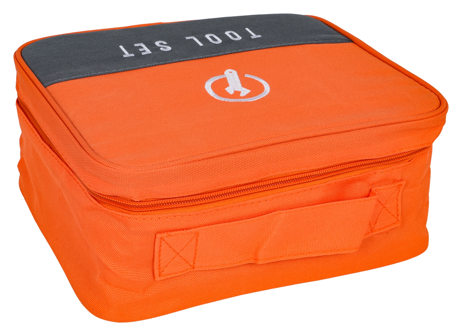Geantă textilă rezistentă, cu fermoar și mâner întărit, menține uneltele organizate. Ideală pentru depozitare și transportul întregului set.