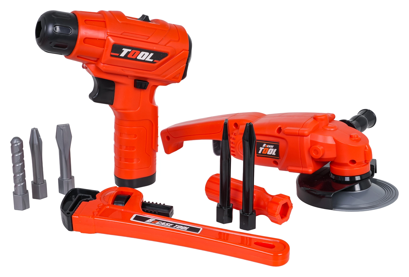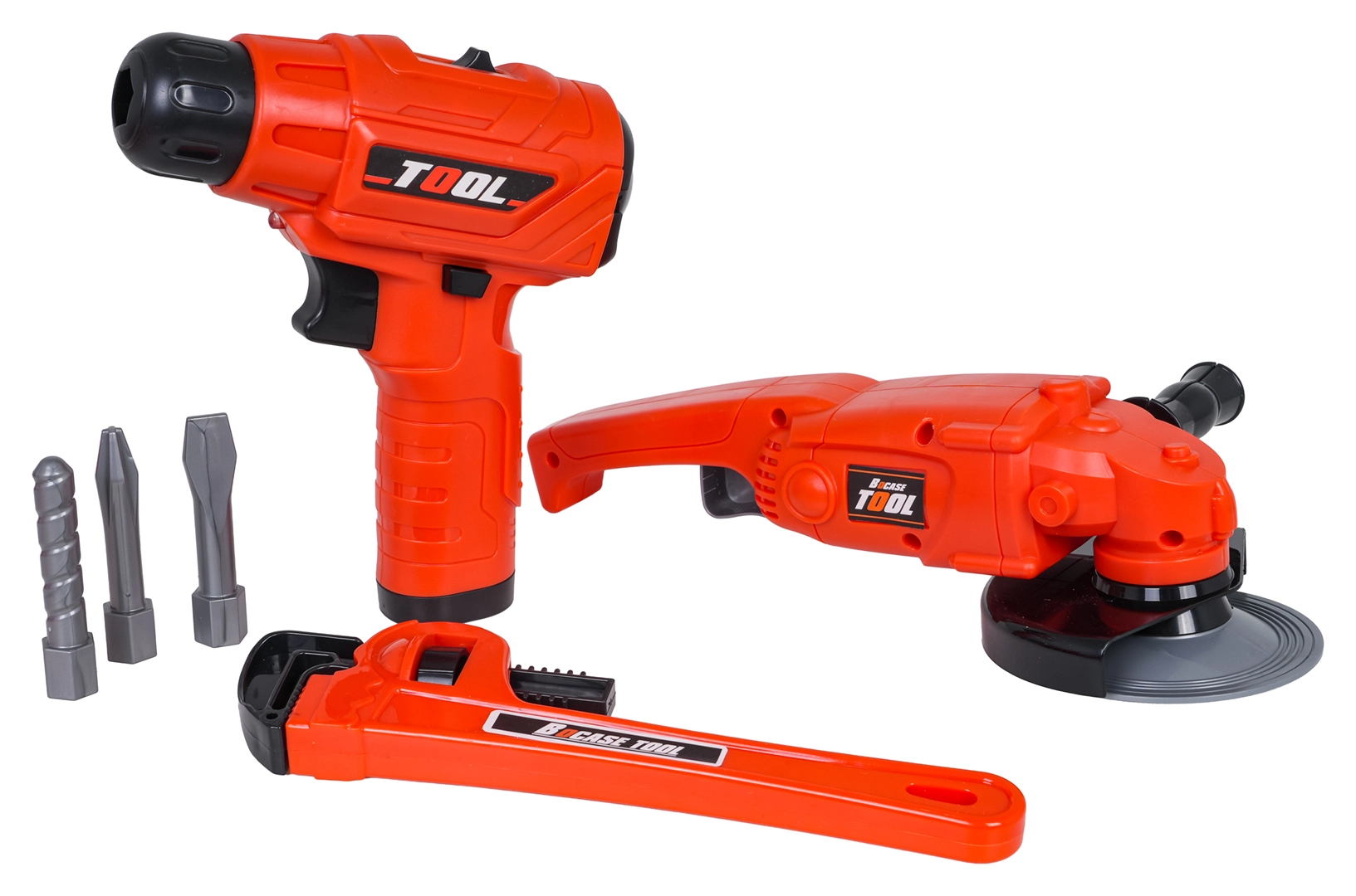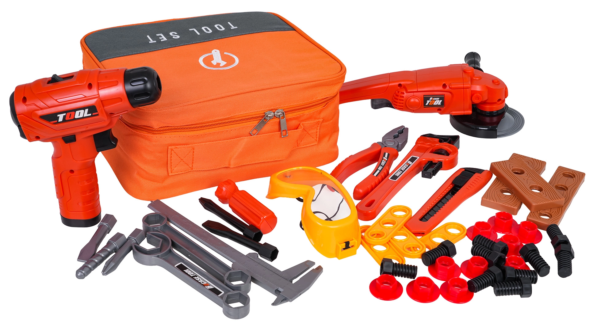 Acest set realist de unelte pentru micii meșteri aduce tot ce au nevoie copiii pentru a imita lucrările adevărate. Geanta pentru unelte, ușoară și rezistentă, cu fermoar și mâner, păstrează în siguranță toate componentele, fiind perfectă acasă și în călătorii. Bormașina/înșurubătorul electric (2× AA, nu sunt incluse) poate înșuruba și deșuruba și are LED și sunete pentru o experiență și mai realistă.