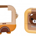 Butoane clare, corp compact și un ursuleț simpatic. Aparatul este conceput pentru mâini mici și rezistență în utilizarea de către copii.