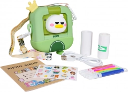 Încântați micii fotografi cu un aparat foto pentru copii care imprimă imediat fotografia pe hârtie termică după capturare. Include un set bogat de accesorii pentru distracție creativă: husă de protecție, 2 role de hârtie termică, cablu USB, șnur, album foto, autocolante și markere colorate, datorită cărora puteți colora fotografiile alb-negru imprimate. Aparatul oferă înregistrare video, efecte amuzante și stocare pe card (slot pentru card), fiind ideal ca cadou pentru copii de la 3 ani.
