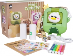 Aparatul foto instant pentru copii cu motiv de rățușcă combină operarea simplă, imprimarea alb-negru instant și creația creativă. Corpul compact cu curea este grozav pentru călătorii, iar husa de protecție asigură transportul în siguranță. În pachet găsiți tot ce au nevoie copiii pentru propria carte foto – de la hârtia termică și markere până la album și autocolante.