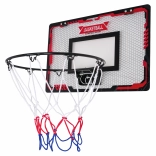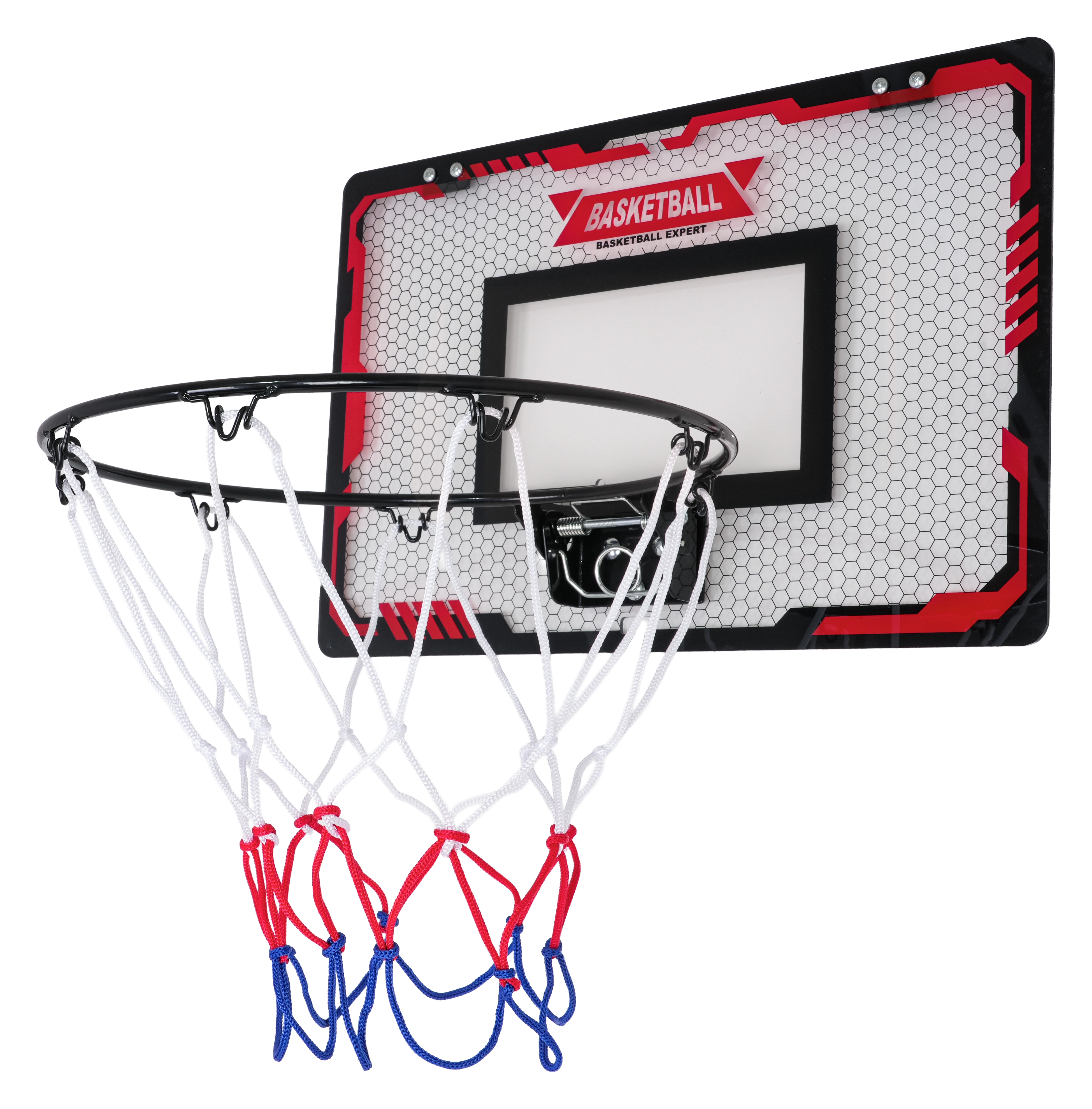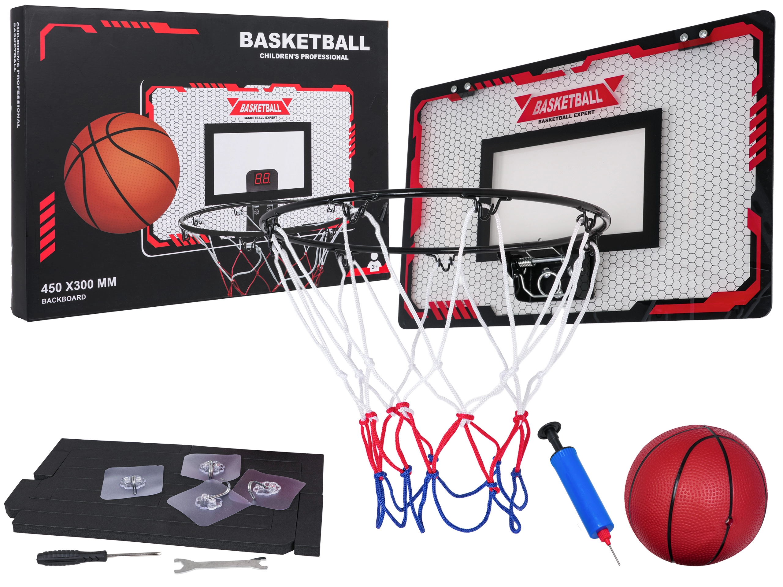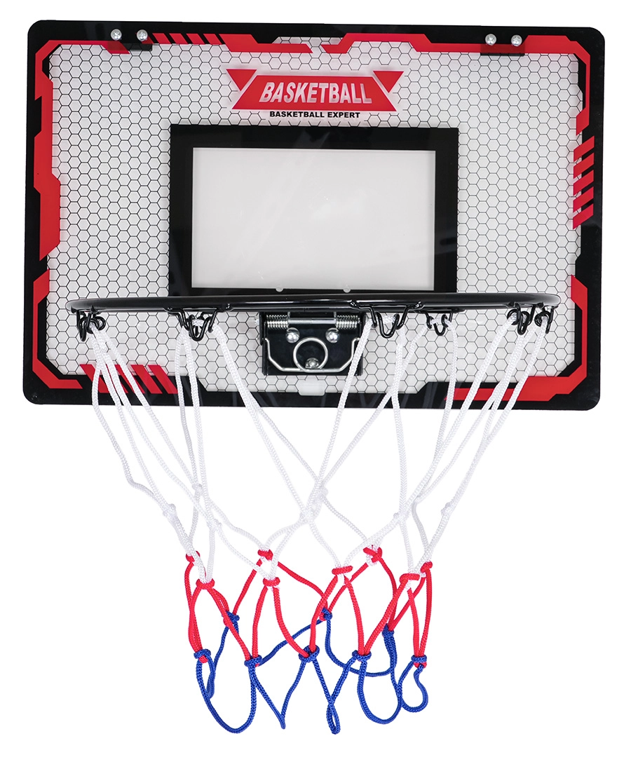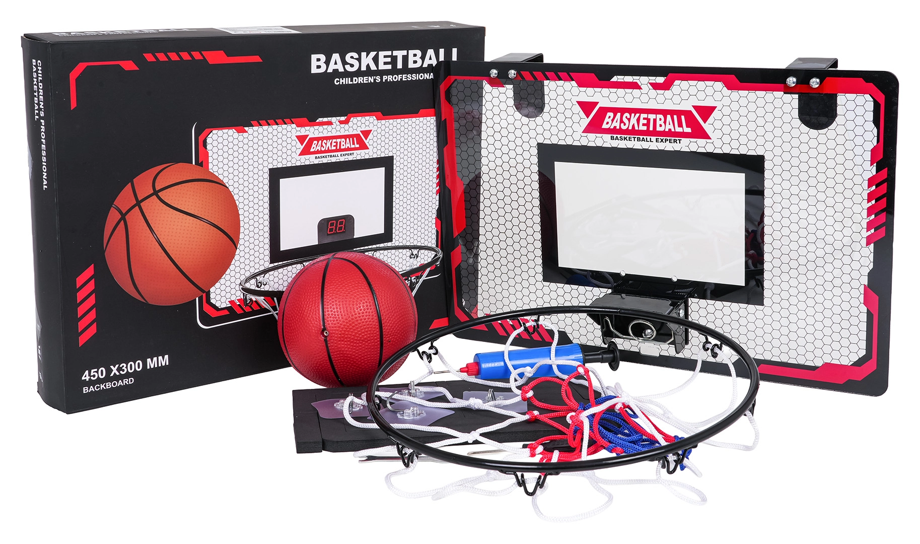 Setul conține totul pentru joc imediat: tablă din plastic rezistent, inel metalic cu plasă, minge din cauciuc, pompiță cu ac și un set de montaj complet, inclusiv șurubelniță și cheie. Ideal pentru camera copilului, hol sau cameră de joacă – susține coordonarea mână–ochi, precizia și spiritul competitiv.