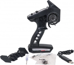 Controlul pe frecvență 2,4 GHz garantează rază fiabilă fără interferențe, mașina rulează lin în toate direcțiile, iar datorită anvelopelor mari din cauciuc cu aderență ridicată își păstrează traiectoria și în secțiunile rapide. Alimentarea este asigurată de bateria Li‑ion 7,4 V 1300 mAh (inclusă), telecomanda necesită 3× AA 1,5 V (neincluse).