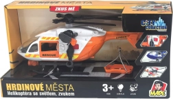 Acest elicopter de salvare atent detaliat, în variantă alb-portocaliu, oferă copiilor distracție autentică. Datorită rotorilor care se învârt, patinelor rabatabile și troliului funcțional cu coș sau targă, copiii pot simula cu ușurință intervenții reale și transportul răniților.