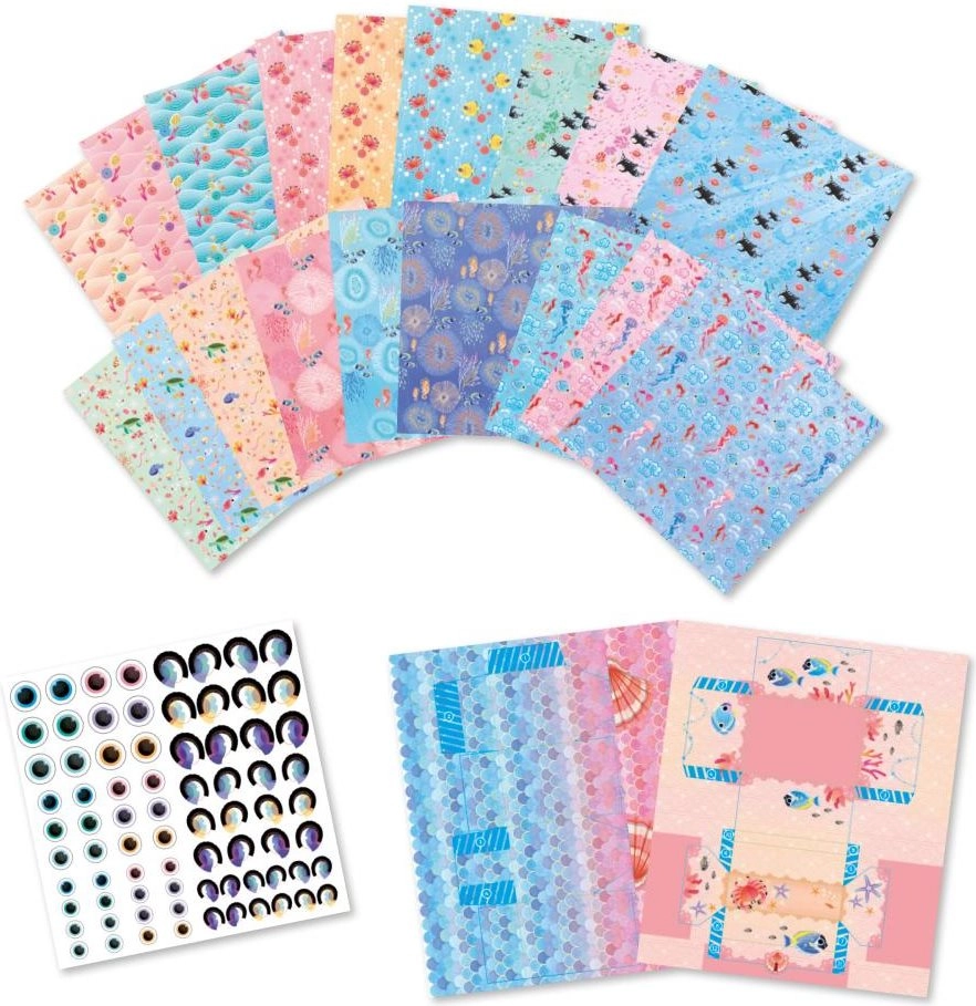 Descoperă un set distractiv de pliere a hârtiei cu tematică oceanică, care îi va încânta atât pe micii, cât și pe marii creatori. Datorită modelelor colorate și autocolantelor incluse, copiii își dezvoltă motricitatea fină, își antrenează îndemânarea și răbdarea și creează forme marine drăguțe, precum și cutiuțe cadou.