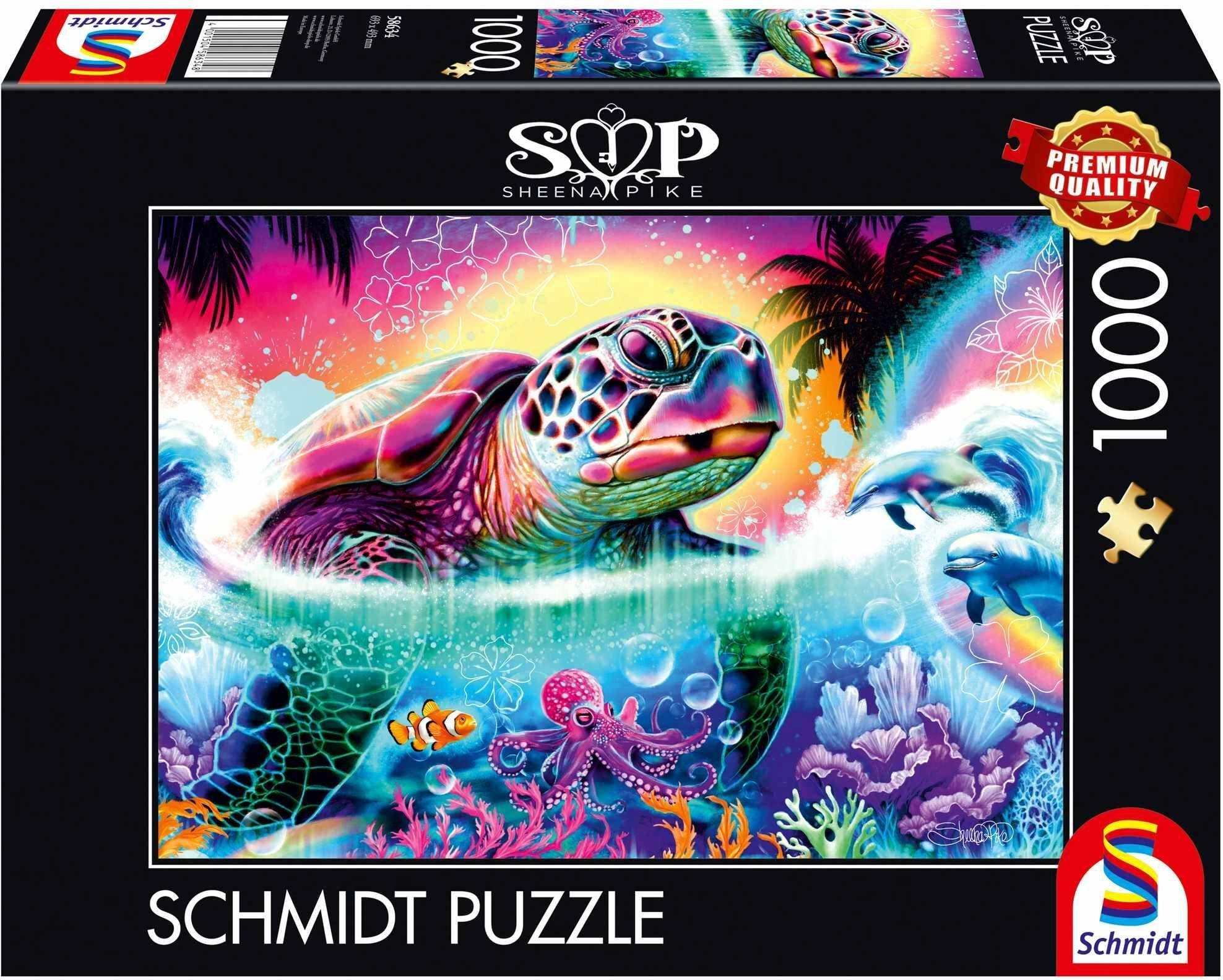 Bucurați-vă de relaxare și provocare cu puzzle-urile de calitate SCHMIDT. Motivul cu țestoasă neon din 1000 de piese se remarcă prin culori intense și detalii fine, pentru o experiență de asamblare perfectă. Puzzle-ul final are dimensiunea de cca 69,3 × 49,3 cm.