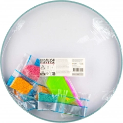 Pictura cu diamante este o activitate creativă și liniștitoare, în care lipești treptat „diamante” colorate pe o pânză pretipărită, creând astfel o imagine lucioasă cu efect 3D. Mandala în combinație florală verde are un aspect elegant și susține senzația de echilibru. Pânza rotundă cu diametrul de 30 cm este o alegere excelentă pentru decorarea livingului, dormitorului sau biroului.
